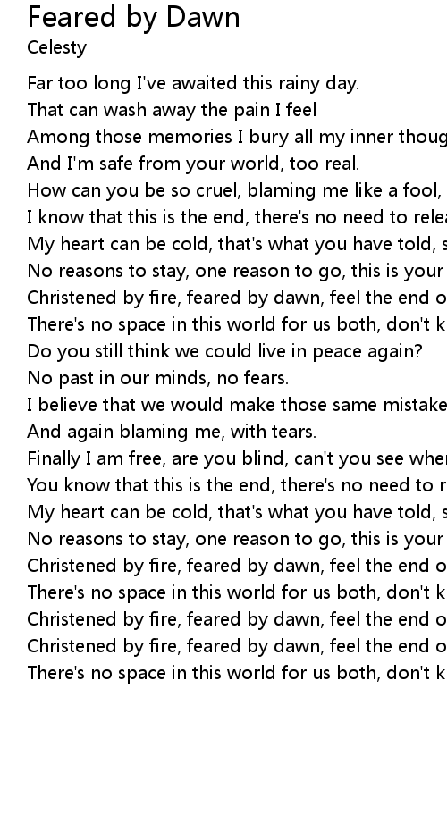 | Christened by fire, feared by dawn, feel the end of our time, dark hues in our future. | |