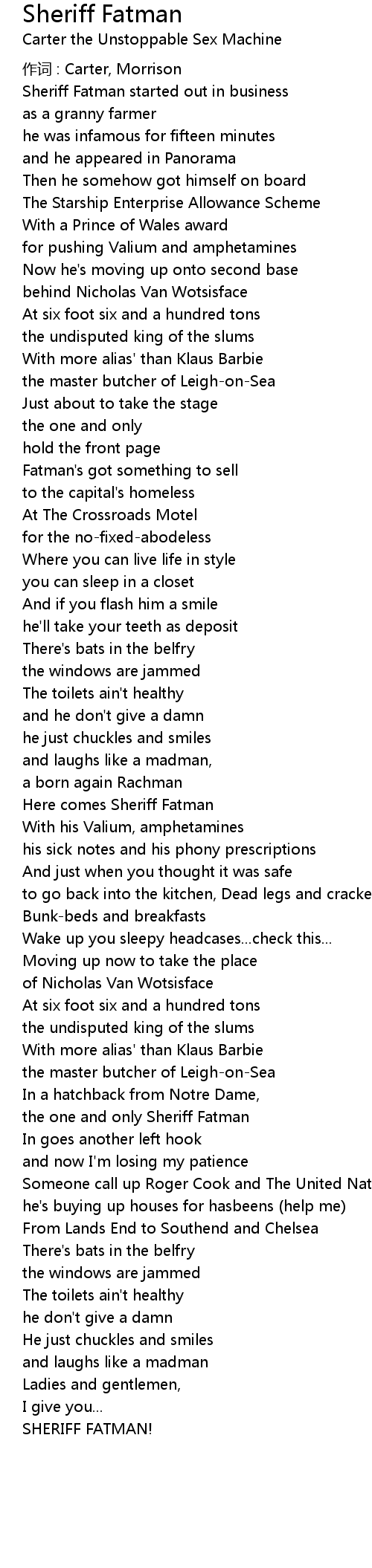 | Song | Sheriff Fatman |