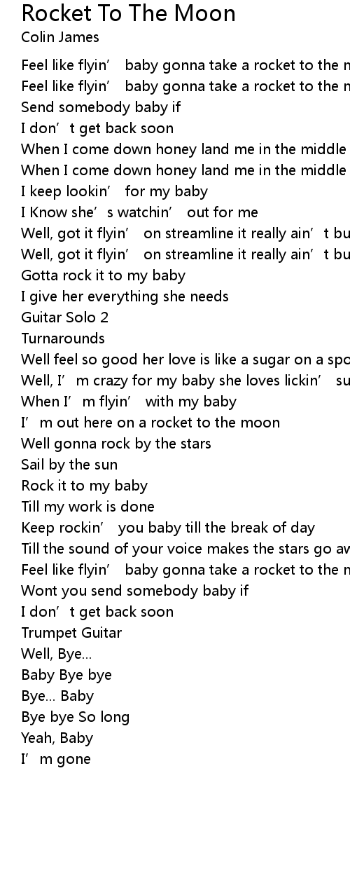 | Feel like flyin' baby gonna take a rocket to the moon | |