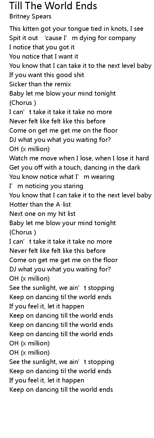 | Keep on dancing till the world ends |