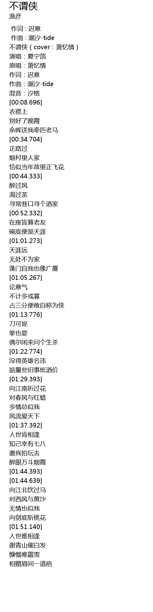 | [00:04.704] | 不谓侠(cover:萧忆情) |