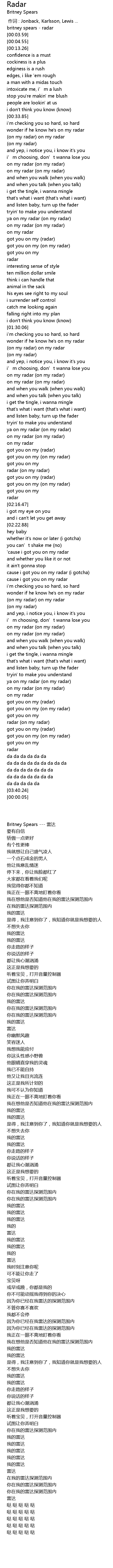 | [00:01.22] | britney spears radar |