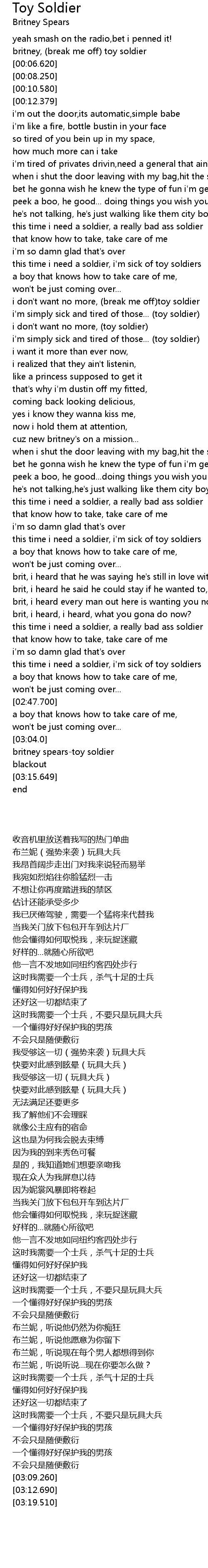 | [01:08.600] | i don't want no more, (break me off)toy soldier |