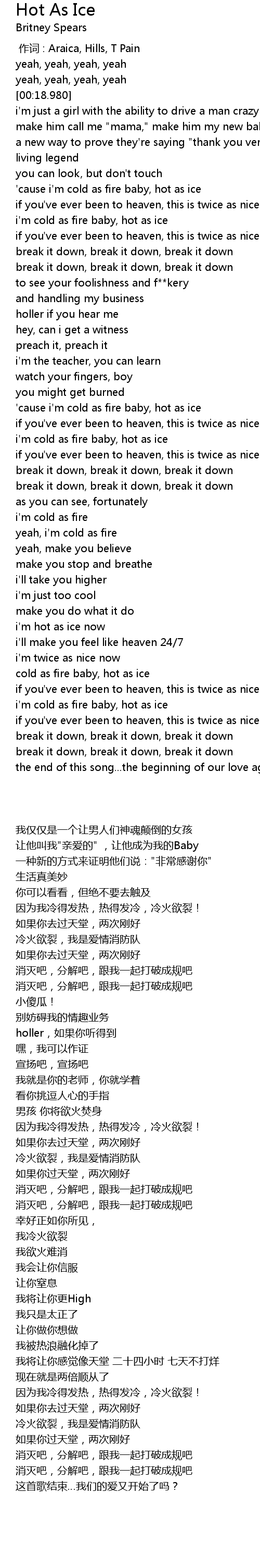 | [00:37.410] | ' cause i' m cold as fire baby, hot as ice |