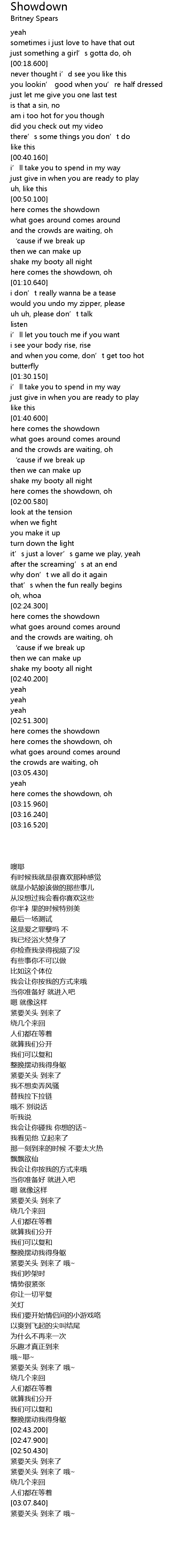 | [03:12.350] | here comes the showdown, oh |