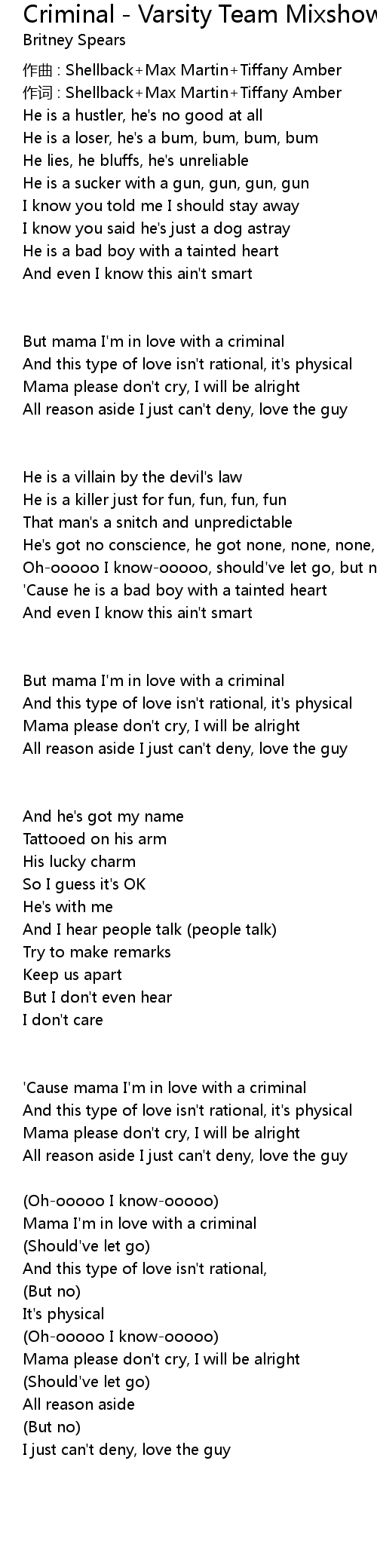 | 'Cause mama I'm in love with a criminal | |