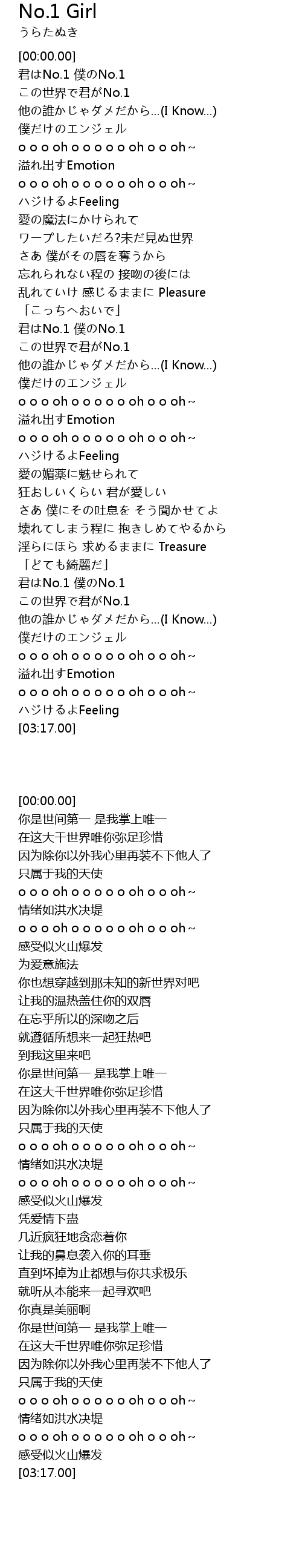 | [01:16.23] | 君はNo.1 僕のNo.1 |