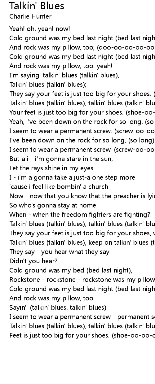 Talkin' blues (talkin' blues), keep on talkin' blues (talkin' blues); |