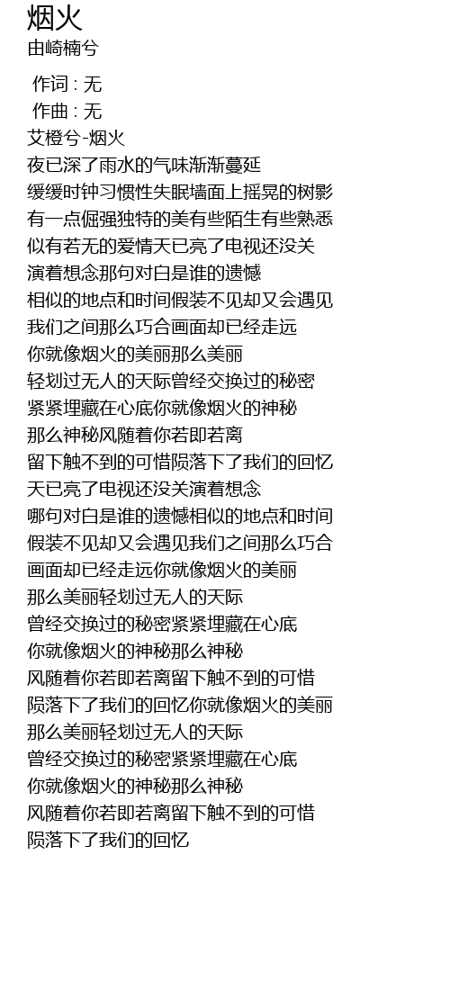 | [02:48.873] | nǐ jiù xiàng yān huǒ de shén mì nà me shén mì |