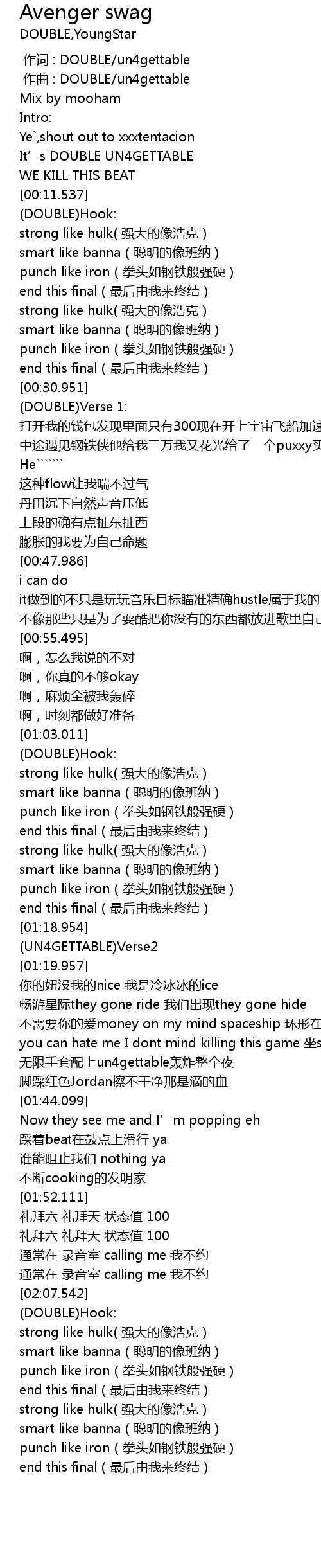 | [02:16.307] | strong like hulk qiang da de xiang hao ke |