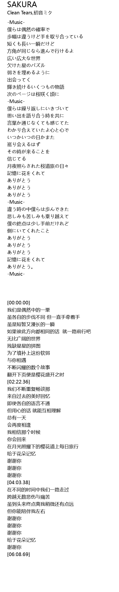 | [02:12.78] | 次のページは桜咲く頃に |