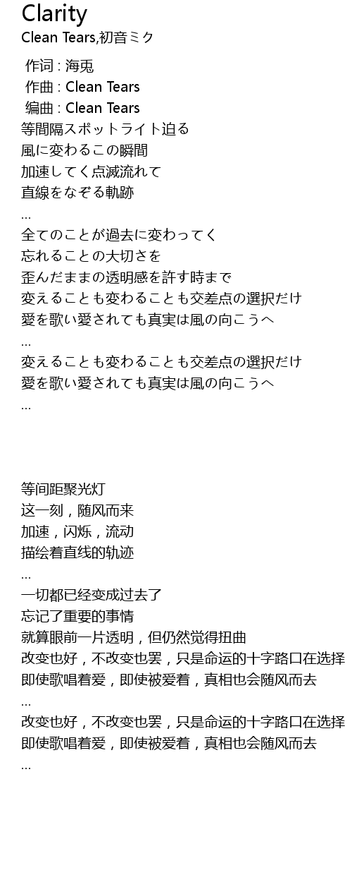 | [00:01.00] | zuò qǔ : Clean Tears |