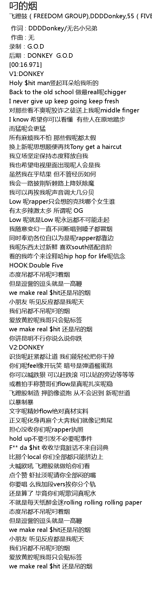 | [00:00.000] | 作词 : DDDDonkey/无名小兄弟 |