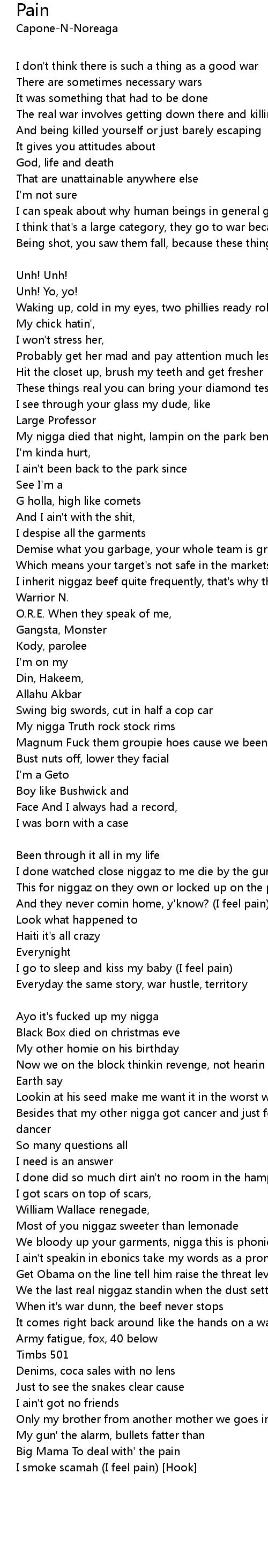 I feel pain [Hook: Capone (Noreaga)] |