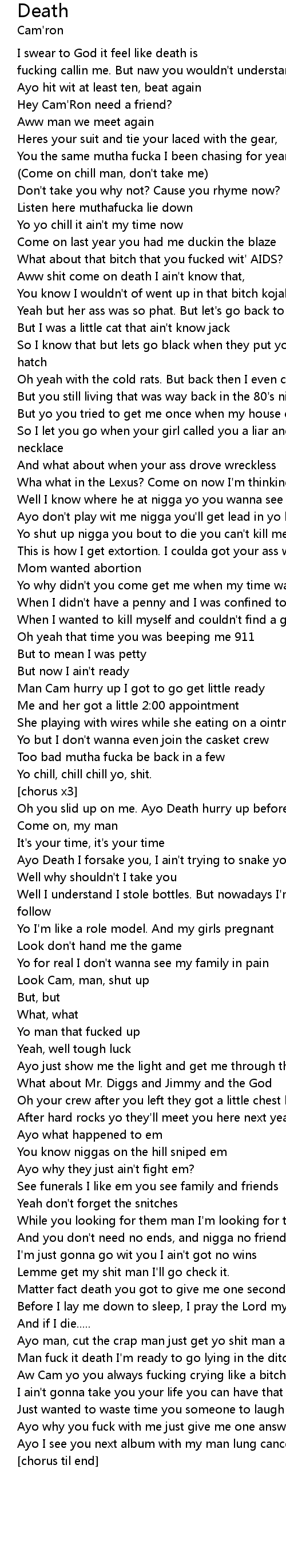 Oh you slid up on me. Ayo Death hurry up before they give up on me. |