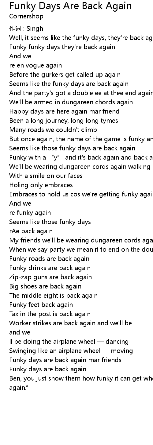 | Ben, you just show them how funky it can get when funky days are back en vogue again.” |