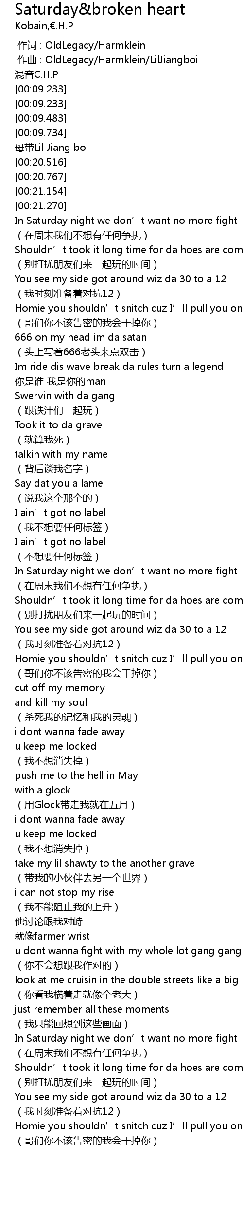 | [00:01.000] | zuò qǔ : OldLegacy Harmklein LilJiangboi |