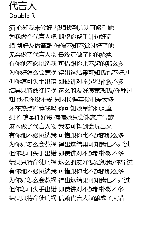 | [00:35.10] | 为我做个代言人吧 期望你帮手讲句好话 |