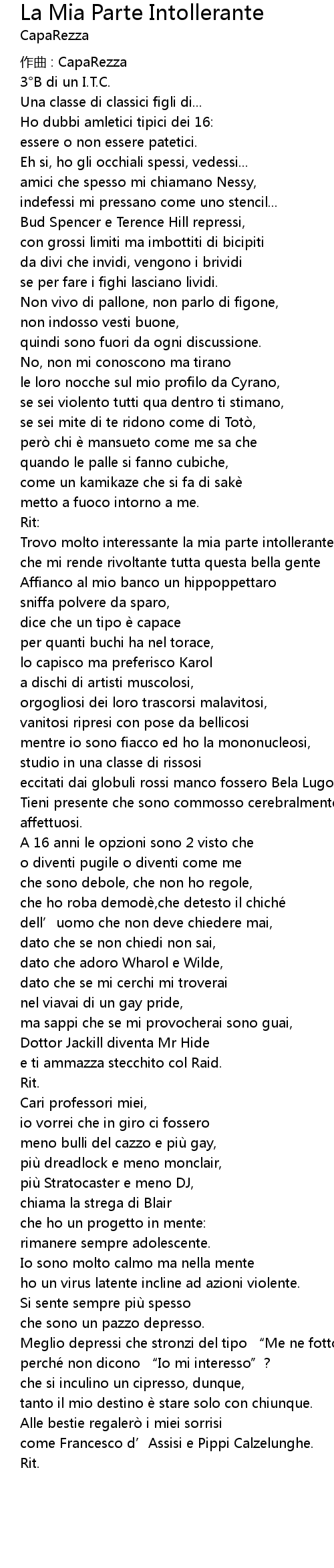 | Song | La Mia Parte Intollerante |