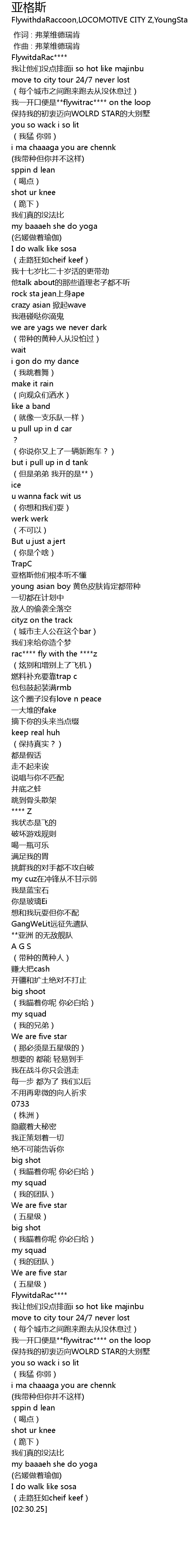 | [01:06.06] | rac**** fly with the ****z |