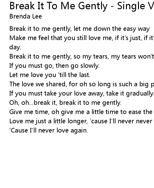 Break it to me gently, so my tears, my tears won't fall too fast. |