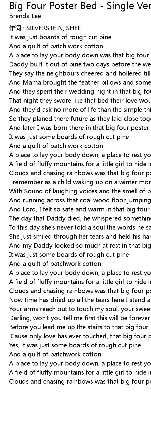 | And my Daddy looked so much at rest in that big four poster bed | |