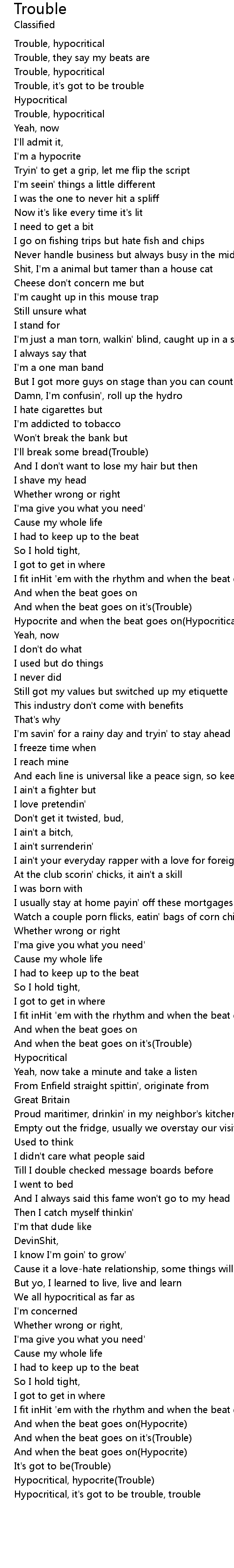 Hypocritical, hypocrite(Trouble) |
