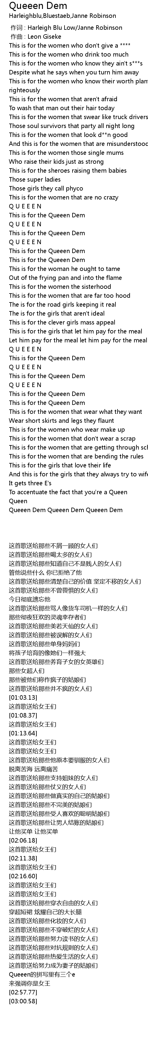 | [03:00.58] | Queeen Dem Queeen Dem Queeen Dem |