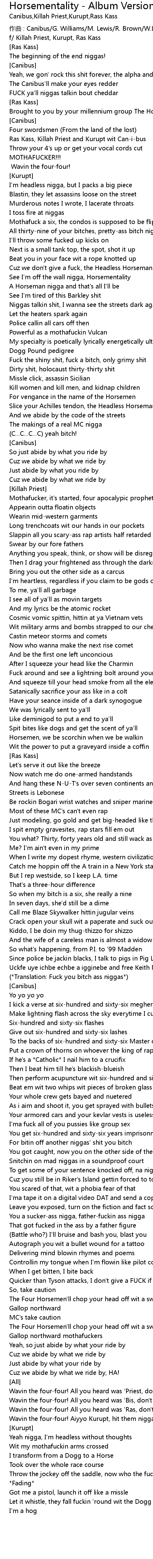 | See I'm off the wall nigga, Horsementality | |