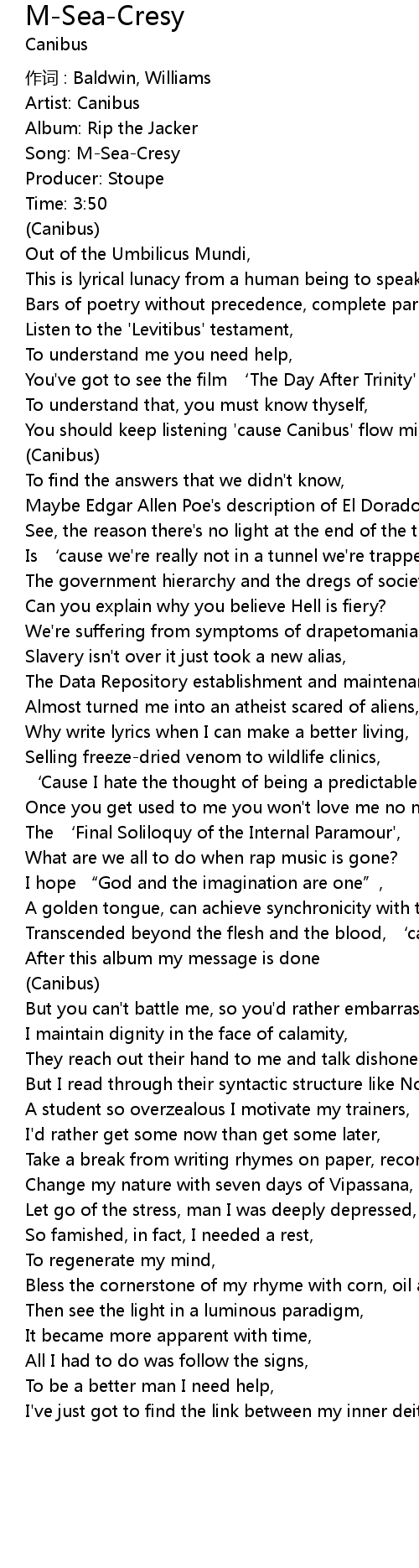 | You should keep listening 'cause Canibus' flow might help | |