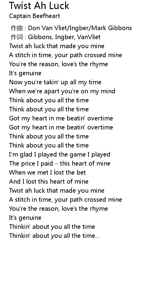 | [00:00.000] | zuo qu : Don Van Vliet Ingber Mark Gibbons |