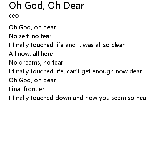 | Song | Oh God, Oh Dear |
