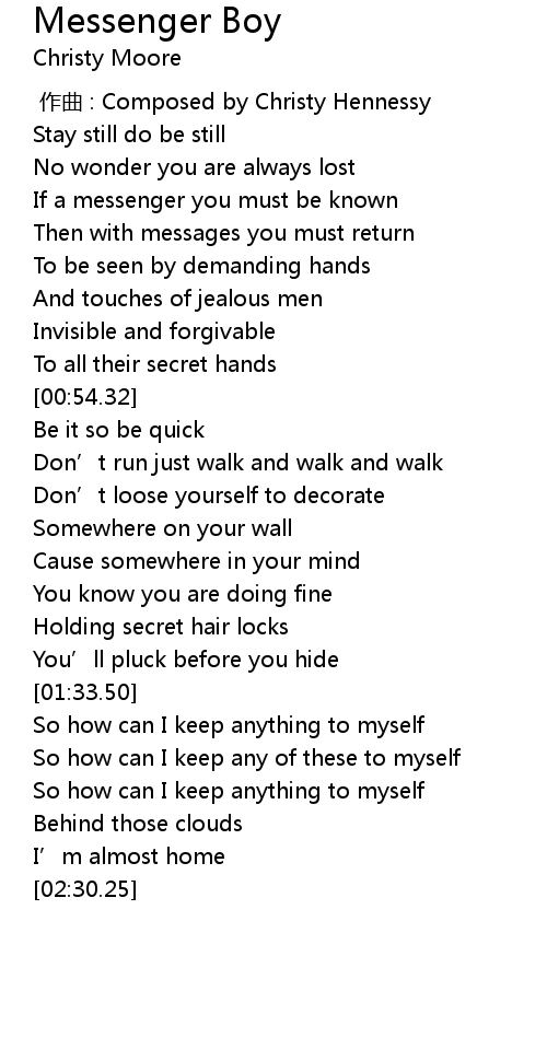| [00:00.00] | zuò qǔ : Composed by Christy Hennessy |