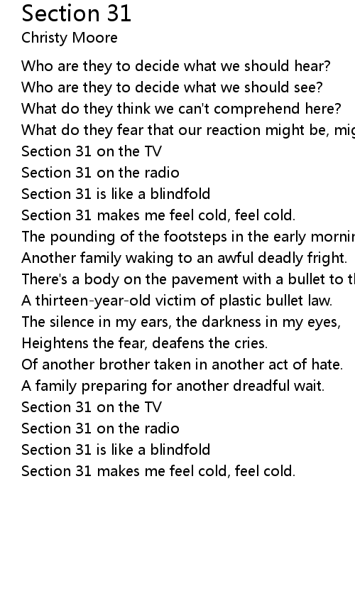 Section 31 makes me feel cold, feel cold. |