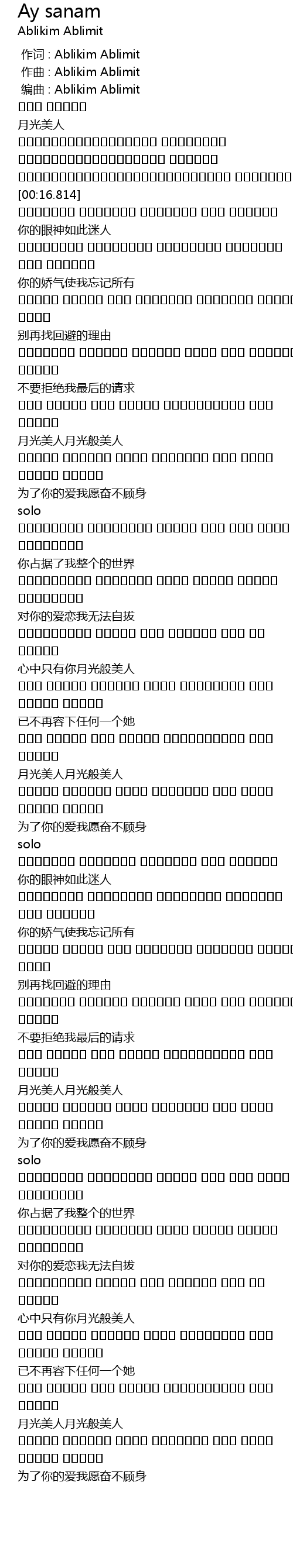 | [00:00.000] | 作词 : Ablikim Ablimit |