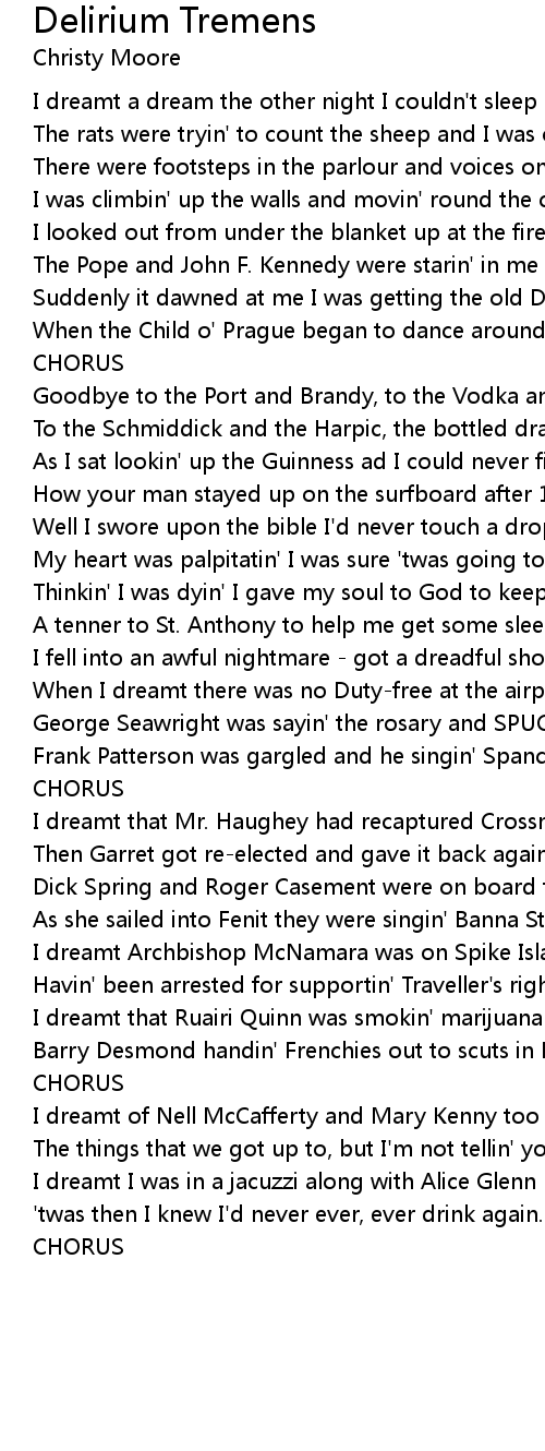 Frank Patterson was gargled and he singin' Spancil Hill. |