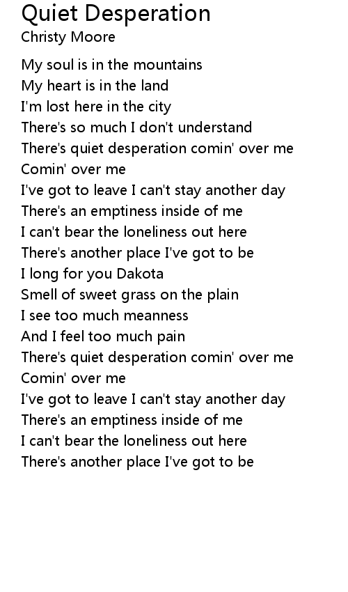 There's quiet desperation comin' over me |