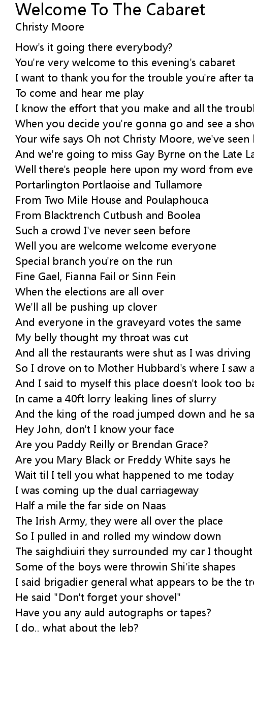 You're very welcome to this evening's cabaret |