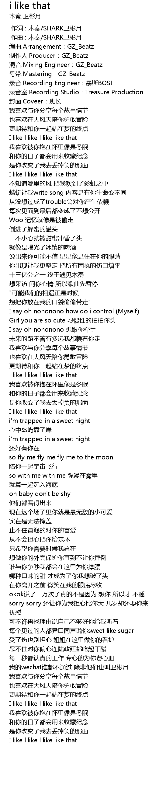 | [01:22.689] | Girl you are so cute xí guàn xìng de pāi pāi nǐ tóu |