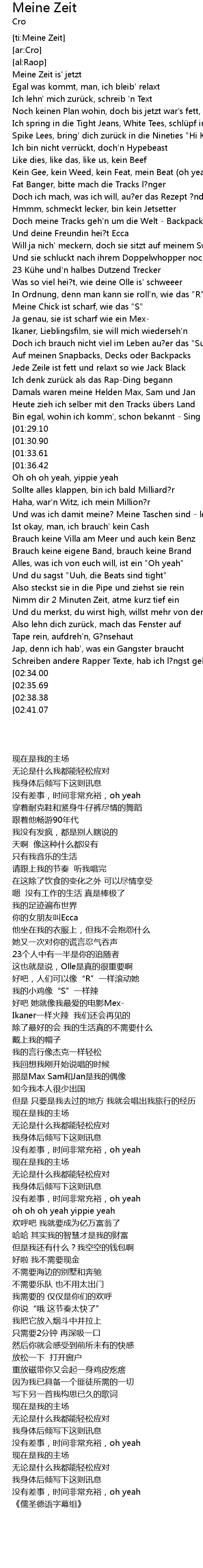 | [02:44.87][02:34.00] | Meine Zeit is' jetzt |