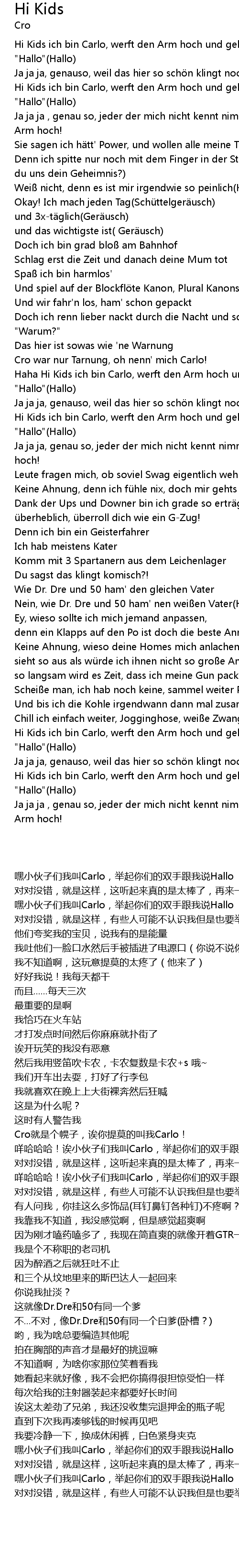 | [01:06.490] | Cro war nur Tarnung, oh nenn' mich Carlo! |