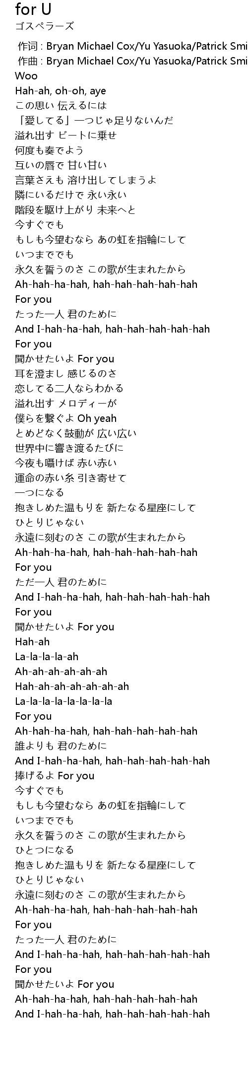 | [00:01.000] | zuo qu : Bryan Michael Cox Yu Yasuoka Patrick Smith |