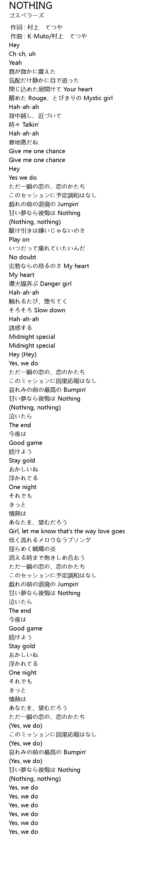 | [00:58.633] | 戯れの前の退廃の Jumpin' |