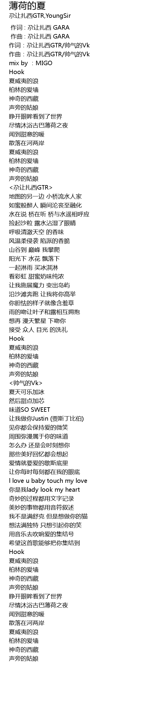 | [00:05.79] | 作词:尕让扎西GTR/帅气的Vk |