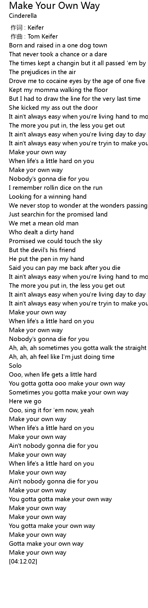 | [02:54.89] | You gotta gotta ooo make your own way |