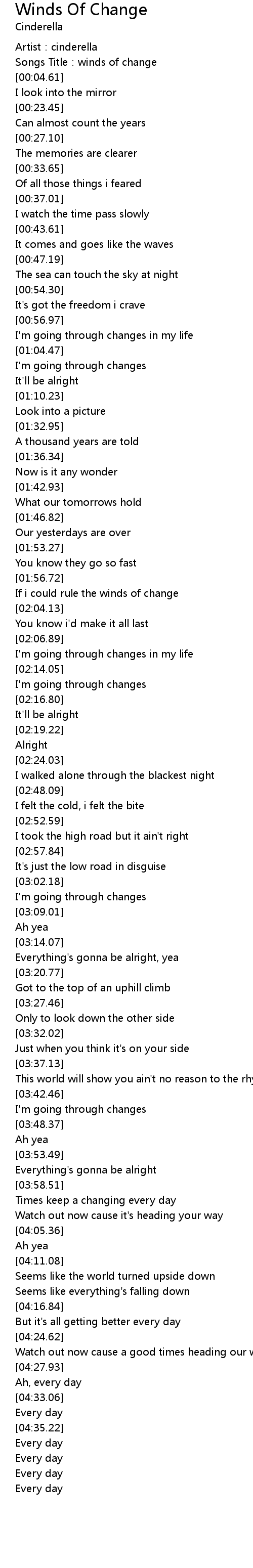 | [04:34.56] | Every day |