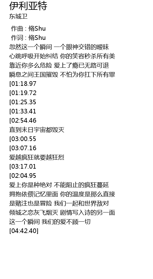 | [04:22.78][03:17.01][01:56.46] | nà yí gè shùn jiān ài jiù yào bù gù yī qiè |