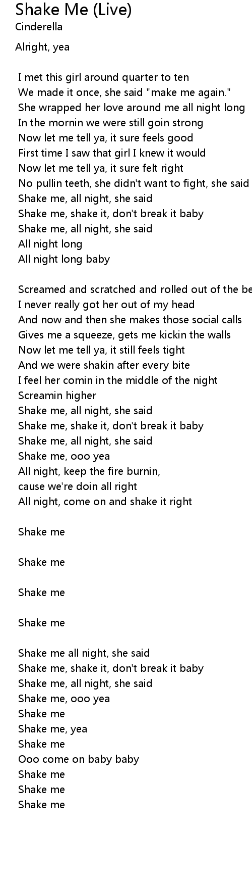 Shake me, all night, she said |