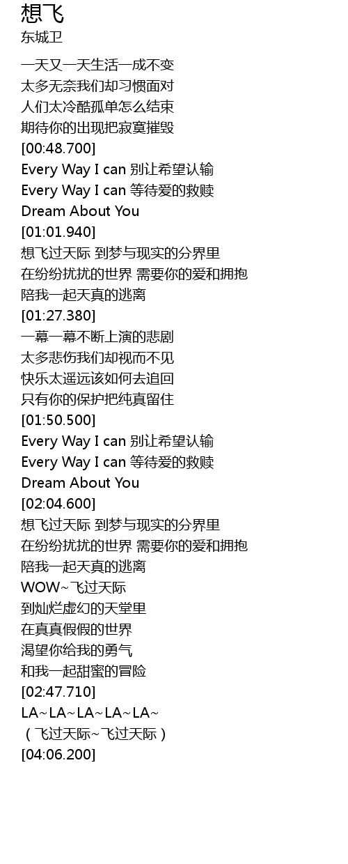 | [02:04.740] | 想飞过天际 到梦与现实的分界里 |