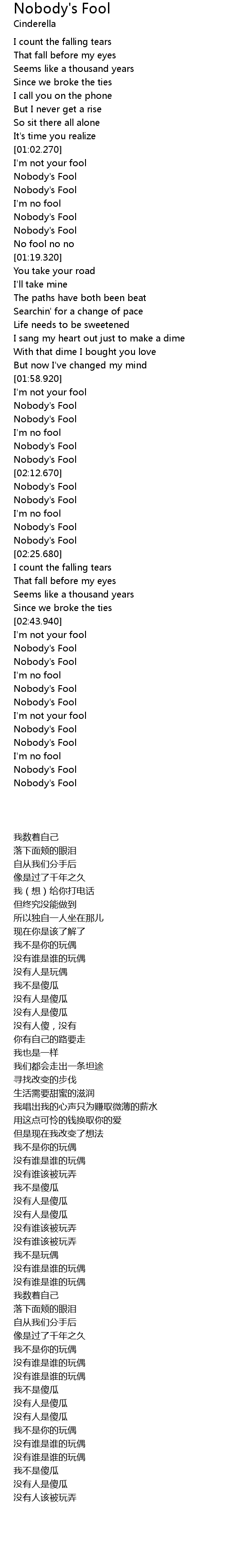 | [02:23.980] | Nobody' s Fool |